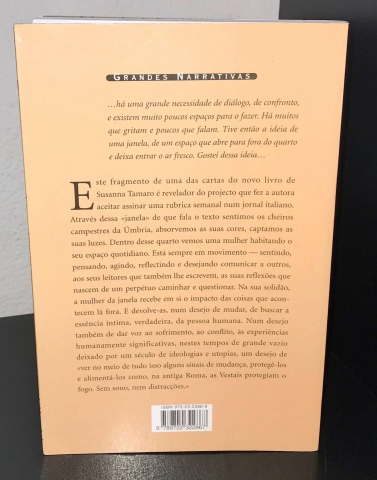 Através dessa " janela" de que fala o texto sentimos os cheiros campestres da Úmbria, absorvemos as cores, captamos as suas luzes. Dentro desse quarto vemos uma mulher habitando o seu espaço quotidiano. Está sempre em movimento - sentindo, pensando, agindo, e desejando comunicar a outros, aos seus leitores que também lhe escrevem, as suas reflexões que nascem de um perpétuo caminhar e questionar. Na sua solidão, a mulher da janela recebe em si o impacto das coisas que acontecem lá fora. E devolve-as, num desejo de mudar, de buscar a essência íntima, verdadeira, da pessoa humana. Num desejo também de dar voz ao sofrimento, ao conflito, às experiências humanamente significativas, nestes tempos de grande vazio deixado por um século de ideologias e utopias, um desejo de "ver no meio de tudo isso alguns sinais de mudança, protegê-los e alimentá-los como, na antiga Roma, as Vestais protegiam o fogo. Sem sono, nem distracções."