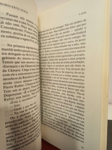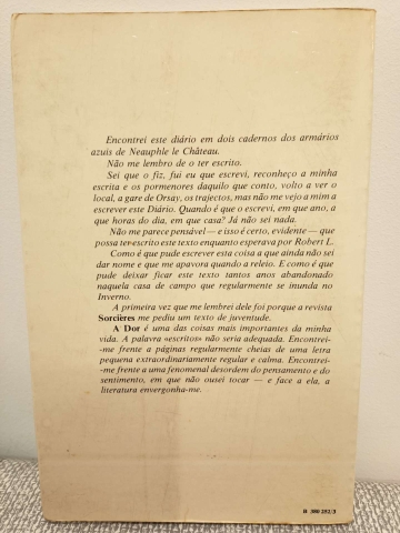 A Dor é uma das coisas mais importantes da minha vida. A palavra "escritos" não seria adequada. Encontrei-me frente a páginas regularmente cheias de uma letra pequena extraordinariamente regular e calma. Encontrei-me frente a uma fenomenal desordem do pensamento e do sentimento, em que não ousei tocar - e face a ela, a literatura envergonha-me. Marguerite Duras