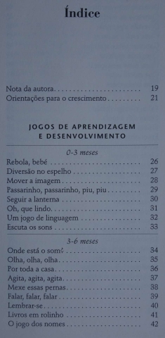 Livro organizado de maneira muito prática e tem jogos bastante interessantes e simples para aplicarmos com bebés.