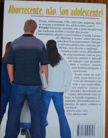 Festas, telefonemas, CDs, televisão, paqueras, nisto se resume a realidade dos adolescentes, certo? Errado! Diversão, amizade, arte e amor são palavras que traduzem melhor o mundo dos jovens. Contestadores, alegres e extrovertidos, Camila, Leonardo, Mariana e muitos outros personagens deste livro representam o intrigante universo adolescente, com seus problemas, suas dúvidas e angústias. Assuntos como vícios, dificuldades de relacionamento com os pais, violência, namoro e amizade são tratados com profundidade e sutileza, criando uma história instigante e envolvente. Assim como na realidade, neste livro os jovens são retratados com toda a sua criatividade, seu espírito curioso e inovador, descobrindo seu espaço, defendendo seus valores, se fazendo respeitar e, finalmente, afirmando com a segurança de quem conhece o seu lugar: Aborrecente, não. Sou adolescente!