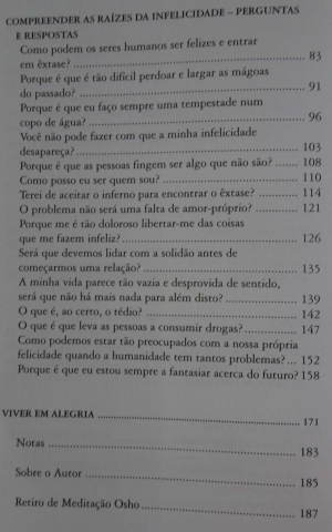 Não existe ninguém que não deseje ser feliz; contudo, o estado em que mais frequentemente nos encontramos é de uma profunda infelicidade. Na verdade, a felicidade parece quase uma utopia; por toda a parte se encontram refúgios para a infelicidade, desde o fanatismo religioso aos antidepressivos. O ser humano separou-se da sua capacidade natural de ser feliz, porque começou a viver de uma forma que nega a sua fonte interior de alegria. A alegria é uma celebração da vida e do momento presente, mas a maioria das pessoas esqueceu que possui esta capacidade de celebrar. No seu estilo mordaz e jovial, Osho incita o leitor a recordar e voltar a utilizar o dom que todos temos - o de partilhar a alegria que a vida nos transmite constantemente e de celebrar as potencialidades da existência humana.