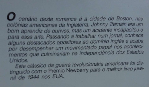 Este clássico da guerra revolucionária americana foi distinguido com o Prémio Newberry para o melhor livro juvenil de 1944 nos EUA.