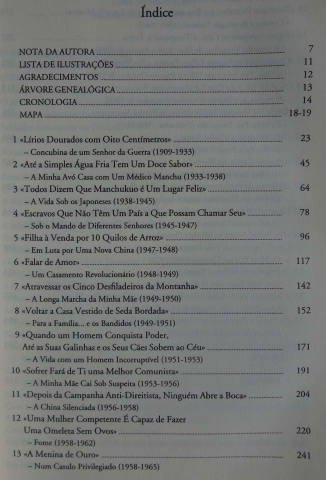 Um livro fabuloso que nos faz viajar da china imperial ao período comunista, usando as histórias da avó, da mãe e da própria Jung Chang como veículos. Esta obra alia o detalhe histórico a uma escrita pessoal e simples que nos atrai e vicia