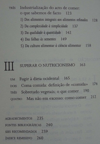 Porque na chamada dieta ocidental a comida foi substituída pelos nutrientes, e o bom senso pela confusão - regra geral, os alimentos que ingerimos atualmente não são produtos da natureza, mas sim produtos da ciência alimentar. O resultado é aquilo a que Michael Pollan designa como «o paradoxo americano»: quanto mais nos preocupamos com a nutrição, menos saudáveis parecemos ficar.