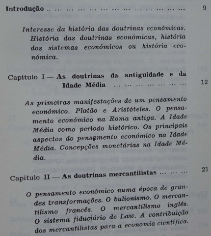 Não é possível ignorar o lugar crescente que a economia ocupa nos estudos organizados, na cultura viva, na ciência do nosso tempo e no planeamento da própria vida das sociedades. Não há campo do conhecimento sobre o qual o condicionamento económico não se reflicta. Daí a necessidade, para uma perspectiva do saber humano que se queira lúcida, de integrar a visão histórica da evolução das ideias económicas (doutrinas, teorias e os próprios sonhos utópicos).