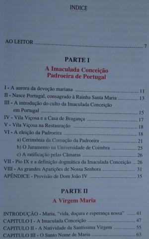 Observações: A Parte II desta obra, que contém o livro do Padre Thomas de Saint-Laurent "La Vierge Marie" foi traduzida do francês por José Narciso Soares