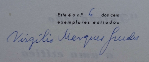 Observações Ver 2. Foto do anúncio: Este é o n. 6 dos 100 exemplares editados, com a própria assinatura do autor Virgílio Marques Guedes