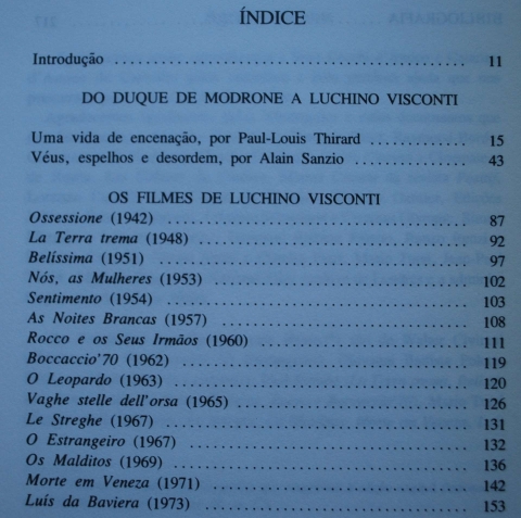Luchino Visconti, de Alain Sanzio e Paul Louis Thirard é um fascinante, rigoroso e exaustivo dossier, através de cujas páginas podem seguir-se, com algum detalhe, as diversas fases de maturação da obra de um dos maiores cineastas do nosso tempo.