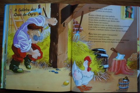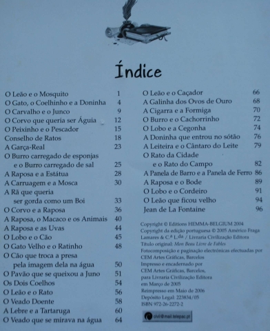 O Leão e o Mosquito, O Lobo e o Cordeiro, A Lebre e a Tartaruga e A Cigarra e a Formiga, A Galinha dos Ovos de Ouro, são alguns dos títulos que este livro apresenta, de uma forma mais sucinta e acompanhado por ilustrações de Gauthier Dosimont.