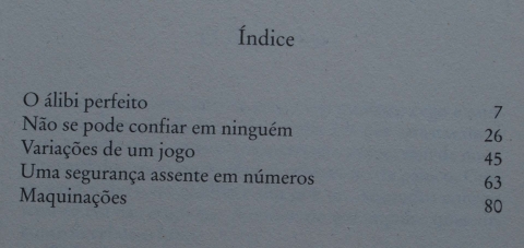 O Álibi Perfeito é o primeiro de cinco pequenos contos, muito compactos. Ou seja, numa escrita económica onde Patrícia Highsmith não desperdiça palavras; não há descrições inúteis nem esse vício que alguns escritores do género parecem cultivar que é desviar o leitor para pistas falsas. Aqui tudo converge para um final de enredo que o leitor não adivinha porque a arte do escritor policial consiste precisamente na sua capacidade de surpreender o leitor. Também neste aspecto, esta escritora é genial.