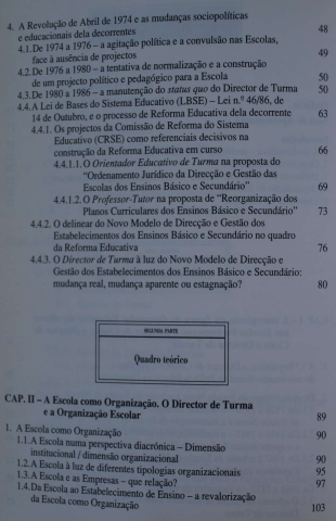 Este livro surge como um desafio irrecusável de investigação numa área ainda pouco explorada em Portugal, apesar da importância de que se reveste na organização pedagógica da Escola actual, face à sua complexidade sócio-organizacional e educativa. Começando por fazer o enquadramento sociopolítico e legal da temática em estudo, ao longo do período temporal definido - de 1895 até aos nossos dias - , tenta analisar comparativamente as concepções subjacentes às figuras do Director de Classe, Director de Ciclo e Director de Turma e compreender, através de uma análise diacrónica, a evolução ocorrida na própria concepção da figura do Director de Turma, face dos estatutos funcionais sucessivamente definidos.Seguidamente, organiza-se um quadro de análise da Escola como Organização e exploram-se três modelos de Organização Escolar, enquadrando o Director de Turma em cada uma das dimensões teóricas seleccionadas, tentando ainda interpretar e explicar o seu "sistema de acção concreto à luz da coexistência dos modelos explorados. Finalmente, ao dar voz aos actores educativos mais directamente envolvidos nesta problemática, detecta uma clara convergência de opiniões, mas, sobretudo, ao desocultar práticas, imagens e representações e ao identificar constrangimentos, tenta delinear mudanças conducentes à revitalização da figura do Director de Turma em cada estabelecimento de ensino e à dignificação do seu estatuto profissional.