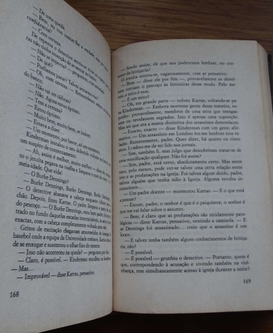Nunca vi o filme e, por isso, parti para a leitura sem quaisquer expectativas e de mente aberta. A verdade é que rapidamente me senti envolvida pela narrativa e muito curiosa por desvendar os acontecimentos seguintes. As descrições do livro são excelentes, principalmente nos momentos de possessão, o que torna a leitura intensa e apavorante. É difícil distinguir a imaginação da realidade e, mesmo para os leitores mais céticos, será um livro difícil de digerir. O final é absolutamente soberbo, violento e impressionante e penso que terá sido um dos melhores finais que já encontrei ao longo das minhas aventuras literárias. Recomendo vivamente! É um livro que pretendo reler um dia mais tarde.