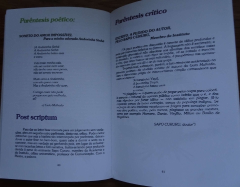 O capítulo do outono é uma análise feita pelo próprio Gato Malhado sobre os últimos acontecimentos no qual ele escreve um soneto. Dá-se o início da queda do romance com uma carta escrita pela Andorinha Sinhá e entregue pelo Pombo-Correio, na qual ela jurava nunca mais o ver.