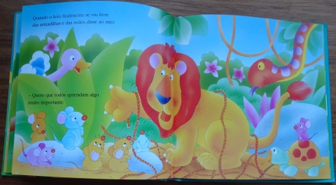 A história é sobre um leão que poupa a vida de um pequeno rato, e mais tarde, o rato retribui o favor ao salvar o leão de uma armadilha.