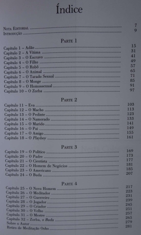 Osho, o grande místico e iluminado fala sobre todo o tipo de homem como o marido, o padre, a homossexualidade e muitos outros, é bastante completo e com uma profunda visão de verdade. Aconselho a ler.