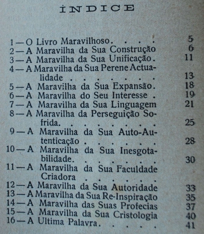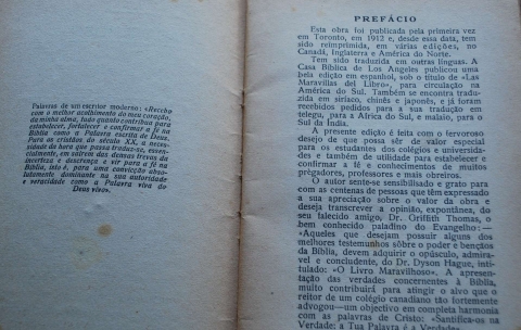 o autor sente-se sensibilizado e grato para com as centenas de pessoas que têm expressado a sua apreciação sobre o valor da obra e deseja transcrever a opinião expontânea, do seu falecido amigo, Dtr. Griffith Thomas, o bem conhecido paladino do Evangelho: - "Aqueles que desejam possuir alguns dos melhores testemunhos sobre o poder das bençãos da Bìblia, devem adquirir o opúsculo, admirável e concludente, do Dr. Dyson Hague, intitulado: «O Livro Maravilhoso». A presentação das verdades concernentes à Bíblia, muito contribuirá para atingir o alvo que o reitor de um colégio canadiano tão fortemente advogou - um objectivo em completa harmonia com as palavras de Cristo: Santifica-os na Verdade: a Tua Palavra é a Verdade"