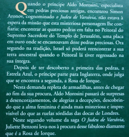 Quando o príncipe Aldo Morosini, especialista em pedras preciosas, encontrou Simon Aronov, cognominado O Judeu de Varsóvia, não estava á espera da missão que esta misteriosa personagem lhe confiaria: encontrar as pedras em falta no Peitoral do Supremo Sacerdote do Templo de Jerusalém, , uma placa em ouro onde se encostoavam doze pedras preciosas. Ora segundo na tradição, Israel só poderá reencontar a sua terra ancestral quando o Peitoral lá tiver regressado na sua íntegra. Depois de ter descoberto a primeira das pedras, a Estrela Azul, o príncipe parte para Inglaterra, onde julga que se encontra a segunda, Rosa de Iorque. Nesta demanda repleta de armadilhas, antes de chegar ao fim da sua procura, Aldo Morosini passará de surpresas a desencorajamentos, de alegrias a decepções, descobrindo que a alma feminina é ainda mais misteriosa e imprevisível do que as ruelas sórdidas das docas de Londres.