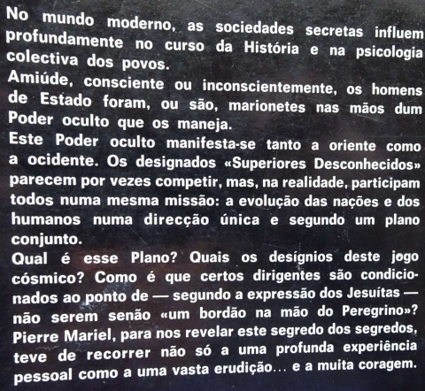 No mundo moderno, as sociedades secretas influem profundamente no curso da História e na psicologia colectiva dos povos.