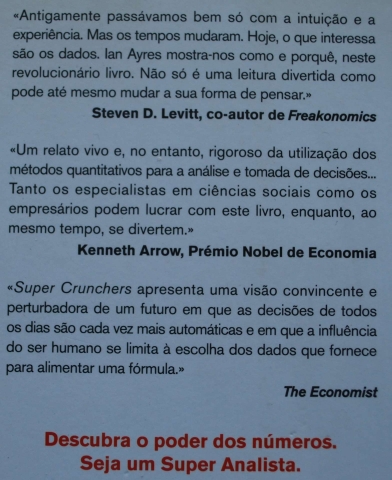 Desde os sites como o Google e o Amazon, ao diagnóstico médico e à educação dos filhos, dos conselhos de administração aos governos, é esta nova raça de decisores que dá as cartas. Neste admirável mundo novo de equações versus especialização, Ayres mostra-nos os benefícios e os riscos, quem perde e quem ganha, e como usar a super análise em nosso próprio benefício.