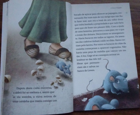 A Viúva e o papagaio é uma história portuguesa de que, sinceramente, gostei muito. Gostei muito desta obra porque em primeiro lugar, eu pensei que o irmão da Sr. Gage tinha mentido sobre as 3 mil libras, mas afinal as 3 mil libras estavam escondidas debaixo do chão. Em segundo lugar, com a leitura desta obra aprendi palavras novas. Na minha opinião, A Viúva e o Papagaio é um dos textos que eu gostei mais de ler. ADOREI mesmo este lindo livro.