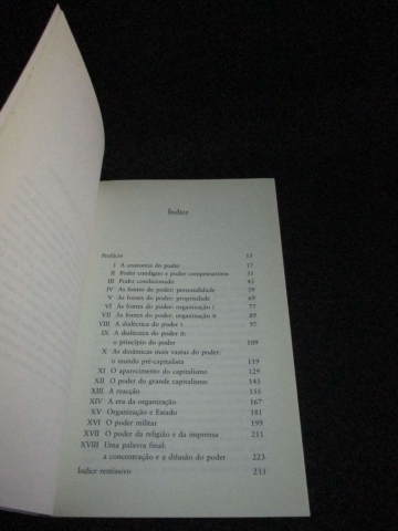 Capa de brochura. Neste livro, o autor analisa os mecanismos através dos quais o poder se manifesta e se perpetua nas sociedades modernas. O autor distingue diferentes formas de poder (condigno, compensatório e condicionado), explorando como estas se interligam na política, na economia e nas instituições.