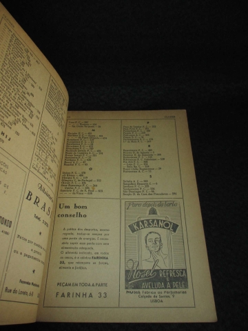 2º Ano. Capa de brochura. Glória dos Campeões, Honra aos Vencidos. Estatísticas, resultados, crónicas e sínteses do desporto português no pós‑guerra. Inclui futebol, atletismo, ciclismo, remo, boxe, natação, entre outros. A brochura original preserva também curiosa publicidade ilustrada de época, com marcas e empresas ligadas ao universo desportivo e comercial português.