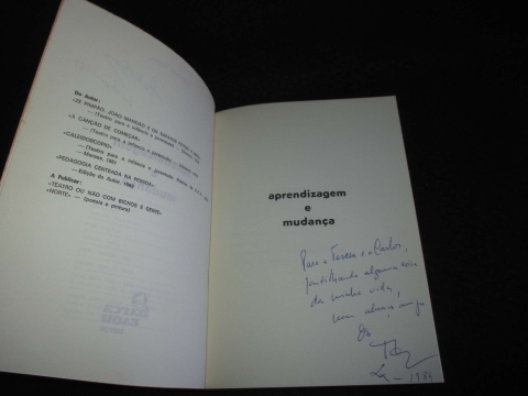 Exemplar valorizado por dedicatória manuscrita do autor. Autografado. Capa de brochura. Capa de Luís Ruas. Fotografia de Sérgio Moraes. Processos de aprendizagem, mudança comportamental e adaptação humana em contexto educativo e social.