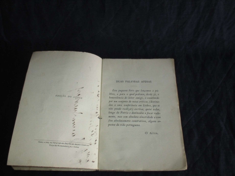 Exemplar valorizado por dedicatória do autor. Autografado. Capa de brochura. Da introdução: “Este pequeno livro que lançamos a público, e para o qual pedimos, desde já, a benevolência do leitor amigo, é constituído por um conjunto de notas críticas, (destinadas a uma conferência em Lisboa que se não poude realizar) escritas, quási todas, longe da Patria e destinadas a focar rudemente, mas com absoluta sinceridade e com fins absolutamente construtivos, alguns aspectos da vida portuguesa”. História de Portugal.