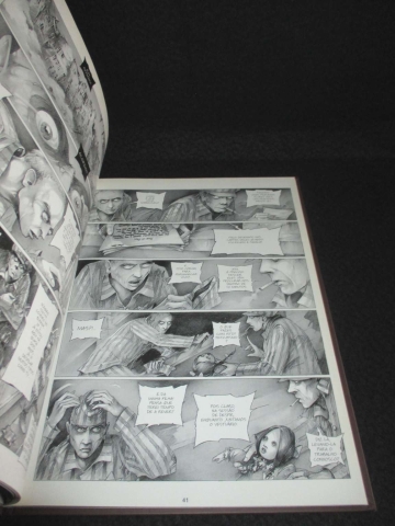 Encadernação em capa dura. A obra combina testemunhos ficcionados com referências históricas, dando voz às vítimas e sobreviventes do campo de concentração. Com traço sombrio e atmosfera carregada, Croci recria episódios que refletem a brutalidade e a desumanização, mas também a resistência e a dignidade humana.