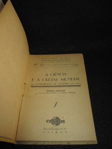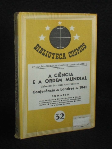 Selecção das Teses Aprovadas na Conferência de Londres de 1941. Direcção do Prof. Bento de Jesus Caraça (da Universidade Técnica de Lisboa). Encadernação do editor em capa cartonada. Carta da Ciência. Ciência e Governo. Ciência e necessidades humanas. Ciência e Planificação Mundial. Ciência e progresso técnico. Ciência e Espírito Universal.