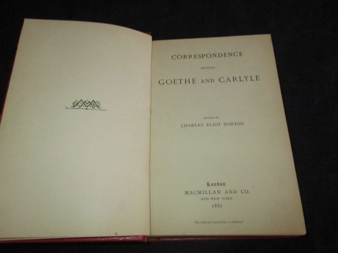 Raro. Obra de referência. Encadernação em capa dura. Livro em inglês. Reúne a troca de cartas entre Goethe e Thomas Carlyle, oferecendo um retrato íntimo da relação intelectual entre dois dos maiores pensadores europeus. Johann Wolfgang von Goethe um dos maiores escritores alemães de todos os tempos. Thomas Carlyle ensaísta, historiador e crítico escocês, profundamente influenciado por Goethe. Literatura do século XIX, filosofia e história cultural.