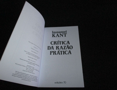 Capa de brochura com descoloração. Tradução de Artur Morão. Entre a Crítica da Razão Pura (1781) e a Crítica do Juízo (1790), a Crítica da Razão Prática constitui, em termos gerais, uma resposta à interrogação moral «que devo fazer?". Ocupa-se, portanto, da razão na sua aplicação prática, enquanto determinação da vontade de agir, e estabelece a seguinte lei fundamental: "Age de tal modo que a máxima da tua vontade possa valer sempre ao mesmo tempo como princípio de uma legislação universal".