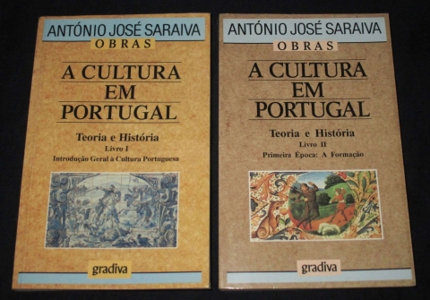 Volume I Introdução Geral à Cultura Portuguesa; Volume II Primeira Época: A Formação. Volume I com alguns sublinhados a tinta vermelha.
