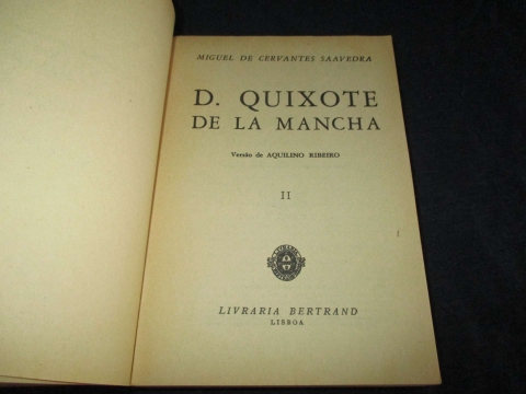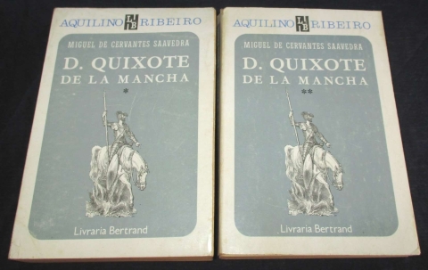 Dois volumes da edição clássica da Bertrand dos anos 1950, traduzida por Aquilino Ribeiro, uma das versões portuguesas mais prestigiadas de D. Quixote de La Mancha. Publicados em formato de bolso, estes volumes apresentam a tradução fiel e cuidada de Aquilino, acompanhada de notas introdutórias que contextualizam a obra e a vida de Cervantes. Conjunto ideal para leitores, colecionadores e estudiosos da literatura universal, embora incompleto (falta o volume III).
