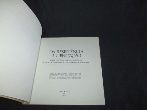 Muito Raro. Edição da Direcção-Geral da Divulgação por Ocasião da Exposição «25 de Abril de 1974 - da Resistência à Libertação» promovida pela Secretaria de Estado da Comunicação Social e patente no Mercado do Povo (Belém).