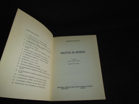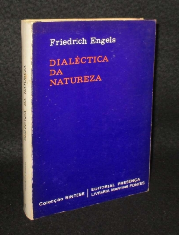 Capa de brochura. Dialética da Natureza é uma obra inacabada escrita por Friedrich Engels em 1883. Nesta obra, Engels aplica as ideias marxistas, em particular o materialismo dialético, na ciência. No prefácio de 1939, J. B. S. Haldane afirma que "a maior parte do manuscrito parece ter sido escrito entre 1872 e 1882, ou seja, refere-se à ciência da época. Por isso, muitas vezes é difícil acompanhar a obra se não se conhece a história da prática científica deste período. A ideia que chamamos hoje de conservação de energia estava começando a permear a física, a química e a biologia, mas era muito pouco pesquisada, e tão pouco aplicada. Palavras como 'força', 'movimento' e 'vis viva' eram usadas na época como sinônimos de energia". Alguns tópicos controversos dessa obra, teorias incompletas e imperfeitas, agora são entendidas, recuperando alguns dos ensaios antigos do filósofo. "O interesse de Engels não era tanto pela crítica detalhada das teorias, mas a abordagem dos problemas intelectuais".