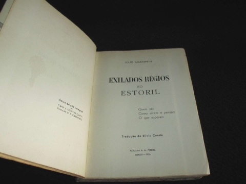 Raro. Quem são. Como vivem e pensam. O que esperam. Capa de brochura. Ilustrado em extratexto com fotografias a preto e branco, e em apêndice, a reportagem fotográfica do casamento, em Cascais, da Princesa Maria Pia de Sabóia com o Príncipe Alexandre da Yugoslávia, no dia 12 de Fevereiro de 1955. Tradução de Silvio Conde. Obra rara sobre a presença das casas reais exiladas no Estoril entre as décadas de 1930 e 1950, período em que a Costa do Sol se tornou um refúgio privilegiado para monarquias depostas da Europa. Júlio Sauerwein retrata o ambiente cosmopolita da região, a vida social dos exilados, as tensões políticas internacionais e o impacto desta comunidade na história portuguesa. História de Portugal.