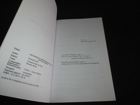 Textos de trabalho. Capa de brochura. «Este texto, em jeito de ‘sebenta’, procura atender a uma dificuldade inerente ao ensino da cadeira de Filosofia da Linguagem e, quero crer, à dificuldade equivalente dos que a frequentam e nela fazem trabalhos. Trata-se, pois, de textos de trabalho». São palavras do autor, que nesta obra coloca questões relativas à problemática contemporânea da linguagem, numa aposta que consiste em que, tanto o discurso filosófico como o das várias ciências, se possam melhor entender entre si, e melhor possamos entender a linguagem também.