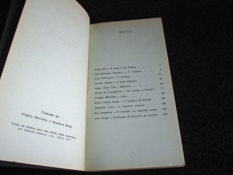 Livro de Bolso. Capa de brochura. Tradução de Virgílio Martinho e Sacadura Brettz. Colectânea de Histórias de Vampiros.