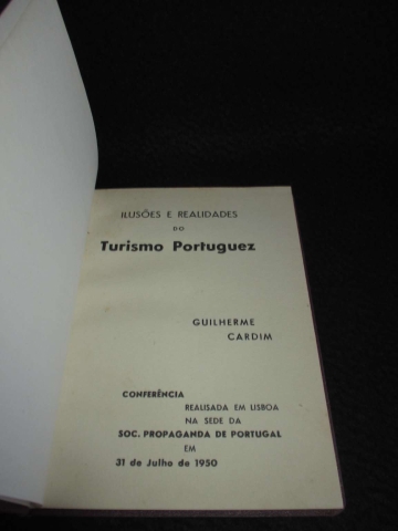 Conferência realizada em Lisboa na Sede da Soc. Propaganda de Portugal em 31 de Julho de 1950. Encadernação do editor em capa cartonada. Contém retrato do autor em extra-texto, impresso em papel de gramagem superior, apresentado num medalhão oval. Nesta palestra, que serviu como uma atualização ou reiteração das teses que o autor vinha defendendo desde o I Congresso Nacional de Turismo (1936), Cardim focou-se em: Balanço do Pós-Guerra; Crítica à Organização Hoteleira; Propaganda vs. Factos; O Papel das Sociedades de Propaganda. Este evento é considerado um marco no pensamento crítico sobre o turismo em Portugal na metade do século XX, por um dos seus maiores especialistas e impulsionadores. Turismo Português