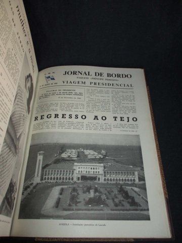 Belíssima encadernação com lombada e cantos em pele, ferros a ouro e folhas de guarda decorativas. 26 jornais diários originais da Viagem Presidencial de 1964.