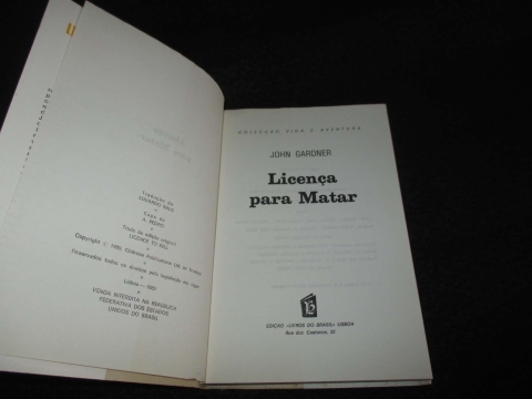 Capa de brochura. Tradução de Eduardo Saló. Capa de A. Pedro. Romance de espionagem baseado no guião do filme Licence to Kill, trazendo de volta o agente 007 numa missão marcada por violência, subtileza e exotismo. John Gardner recria o universo de James Bond numa narrativa intensa que acompanha o herói numa das suas aventuras mais sombrias e pessoais.