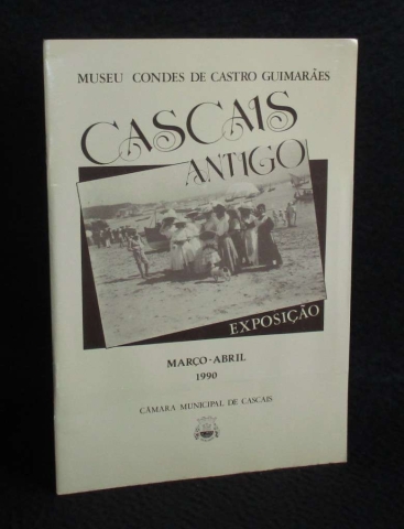 Capa de brochura. Este catálogo foi publicado por ocasião de uma exposição realizada entre março e abril de 1990, no Museu Condes de Castro Guimarães. A obra é um importante registo visual e histórico que utiliza o acervo documental e fotográfico para retratar a evolução da vila de Cascais.