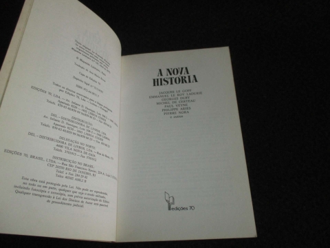 Capa de brochura. Falar de Nova História é sobretudo falar de uma nova maneira de ser historiador, definindo-se este como um observador que recusa a história dos «grandes homens» ou das «grandes sínteses».