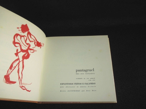 Encadernação editorial, em material sintético. “Pantagruel Rei dos Dípsodos, restituído ao seu natural com seus ESPANTOSOS FEITOS E FAÇANHAS pelo Abstractor de Quinta Essência Mestre Alcofribas que Deus haja”.