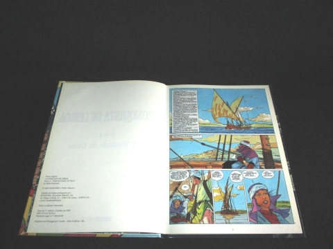 Encadernação em capa dura. Estamos perante uma intensa trama histórica, velhinha de mais de 800 anos. A conquista de Lisboa em 1147, por Afonso Henriques, representa um acontecimento capital que marcou Lisboa e toda uma nação pela mão do autoproclamado "Primeiro Rei de Portugal". Estranhamente, este episódio marcante, não é descrito em nenhuma fonte histórica contemporânea com as preocupações de rigor objectivo e de dignidade moral que seriam de esperar. O autor, Pedro Massano, leva-nos a um vertiginoso mergulho na Idade das Trevas, a Alta Idade Média peninsular, através de um estranho percurso onde se entrechocam obscuros interesses e misteriosas personagens. Banda Desenhada Histórica.