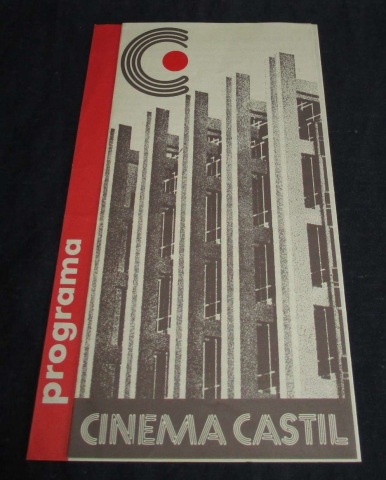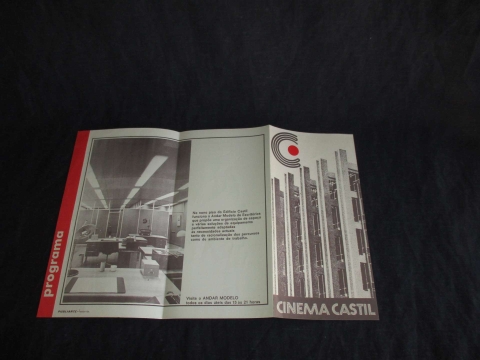Peça de colecção. Em 1973 nascia em Lisboa o Edifício Castil. Com uma traça moderna e multifuncional este espaço combinava escritórios com uma galeria comercial e uma ampla sala de cinema. O número deste programa destacava o filme de abertura: a comédia romântica “ Que se passa doutor?” com Barbra Streisand e Ryan O’ Neal e o destaque do filme seguinte “ Perdido por Cem” de António-Pedro Vasconcelos. Sem publicidade, o programa opta por promover o andar modelo de escritórios com “ soluções de equipamento perfeitamente adaptadas às necessidades atuais”.