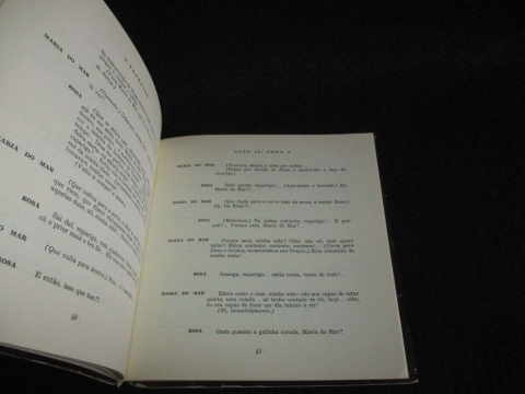 Assinatura de posse. Capa de brochura. Capa e maquetas de Otelo Azinhais. Peça em três actos e três quadros da autoria de Bernardo Santareno, que retrata a tensão no seio de um jovem casal decorrente de uma promessa religiosa de castidade, refletindo-se essa tensão também no círculo da família e amigos.