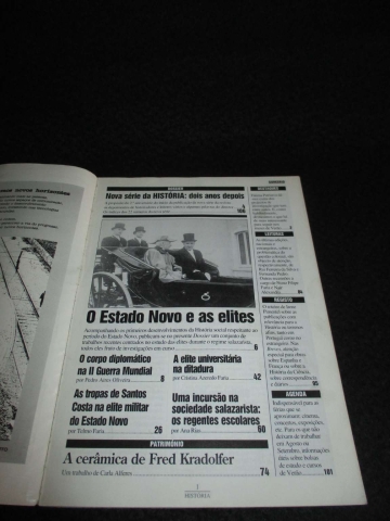 Capa de brochura. Ilustrado. Número duplo dedicado ao dossier O Estado Novo e as Elites, com estudos sobre elites políticas, económicas, militares e culturais do regime salazarista. Do índice: