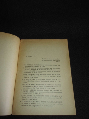 Documento jurídico raro relativo ao processo que levou à extinção da Sociedade Portuguesa de Escritores, uma das decisões mais controversas do Estado Novo no domínio da liberdade cultural e associativa.